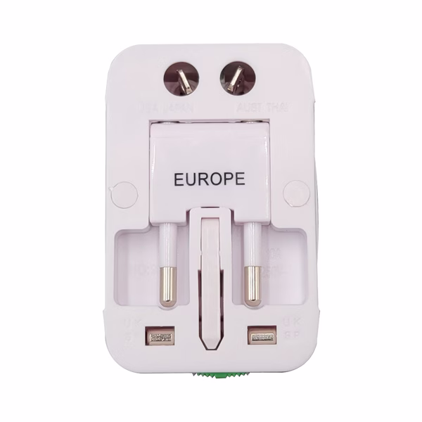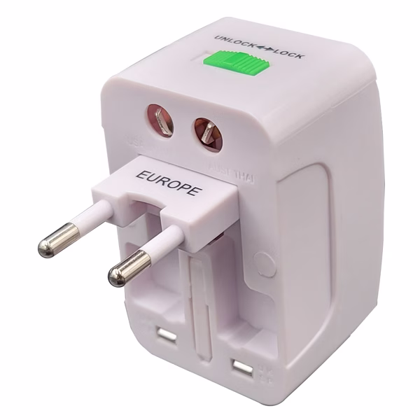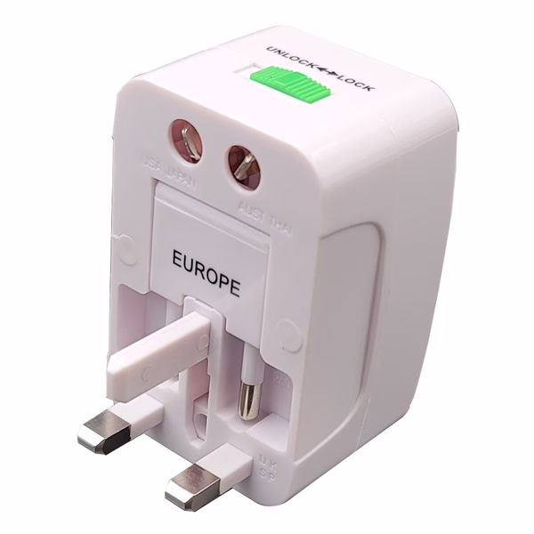 Adattatore da viaggio per spine e prese di tipo europeo, inglese e americano