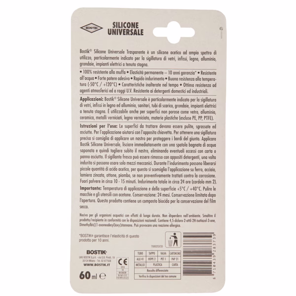 Adesivo universale, flessibile e resistente, adatto per quasi tutte le riparazioni sia in interni che in esterni. Punto di forza è la resistenza a condizioni estreme sia di temperatura che di umidità. Elastico, resistente, sicuro e facile da utilizzare per le piccole riparazioni di tutti i giorni. Incolla sia materiali porosi che non porosi come legno, tessuti, cuoio, truciolare, metallo, plastica, gomma, ceramica, pietra, cemento e molti altri anche tra di loro (non adatto a PE, PP, PTFE). Incollaggio riposizionabile entro 5 minuti. Tenuta finale dopo circa 24H.