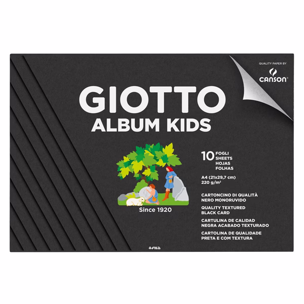 Album Kids cartoncino nero 5+ – A4 – 220gr – 10 fogli – Giotto
