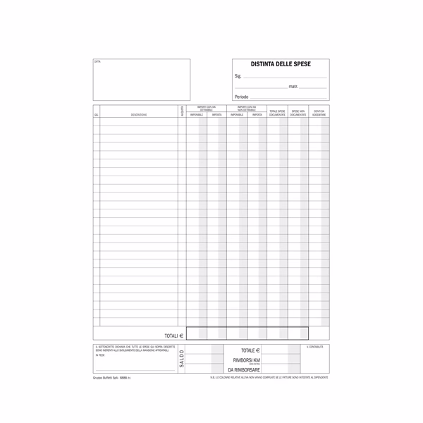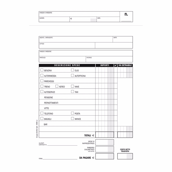 Blocco 25 buste staccabili NOTA SPESE, f.to 23x16cm.