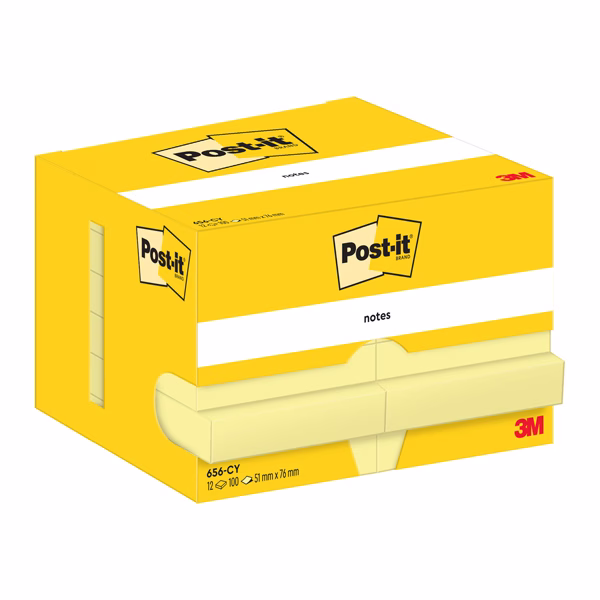 L’originale blocchetto adesivo riposizionabile da 100 fogli, nel classico colore Giallo Canary. Confezione da 12 pezzi.