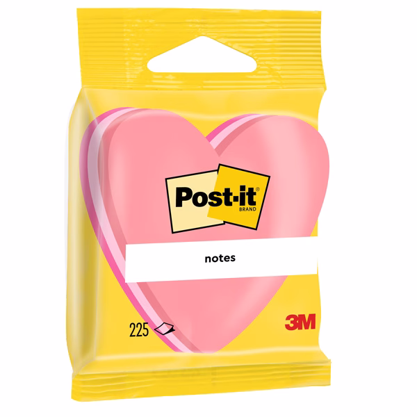 Blocco foglietti cuore – 2007-H – 70 x 70 mm – rosa neon/rosa ultra/rosa pastello – 225 fogli – Post it®