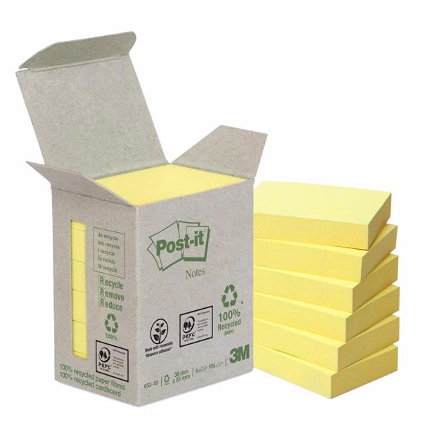 Blocco Post it® Notes Green – 653-1B – 38 x 51 mm – 100% riciclabile – giallo – 100 fogli – – Post it®