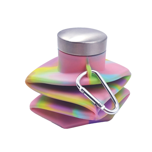 Borraccia realizzata in silicone, con il tappo e moschettone in acciaio inox 304. Il design consente di ripiegarla facilmente in un formato compatto, in modo da poterla portare con sé ovunque si vada. Include, inoltre, un attacco per portachiavi che la rende facile da agganciare allo zaino o alla borsa da palestra. Capacità 700ml, priva di sostanze chimiche nocive come il BPA.
