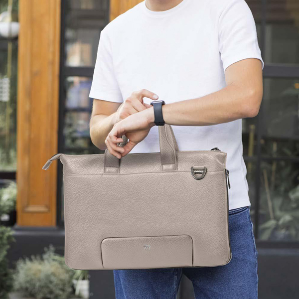 Borsa a due manici con fondo espandibile. Tasca porta pc 15”, tasca porta tablet, tracolla con salvaspalla imbottito, tasca anteriore con alloggiamenti vari, doppio soffietto porta documenti, tasca posteriore con maniglia per trasporto su trolley.