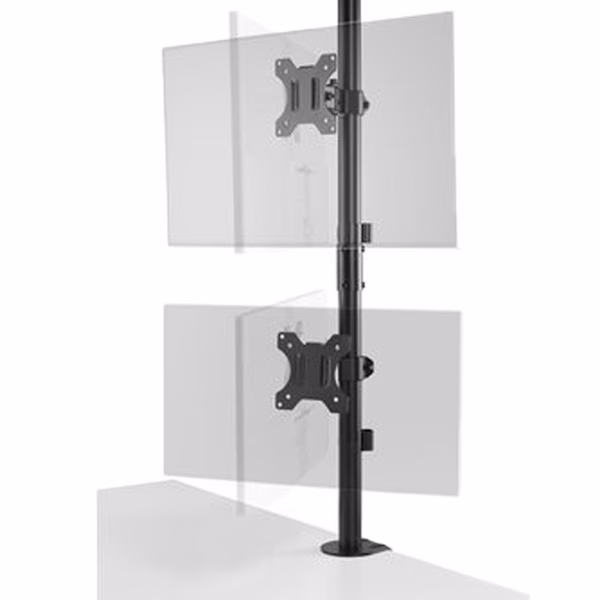 Il braccio per doppio monitor con impilamento verticale offre un posizionamento verticale solido e stabile di due monitor (ciascuno fino a 32″ e 9 kg) e ottimizza al massimo lo spazio di lavoro. Ideale per l’uso con videogiochi, in sale di controllo o ambienti in cui lo spazio sulla scrivania è limitato e per migliorare lo scorrimento verticale durante la navigazione web. Una maniglia a sgancio rapido permette la regolazione agevole e fluida dell’altezza del monitor. La struttura completamente articolabile, facile da installare e regolare, consente di orientare il monitor in qualsiasi direzione. Le piastre VESA® 75/100 rimovibili e orientabili a ±180° e il morsetto a C preinstallato (montaggio opzionale con anello di tenuta incluso) assicurano una piattaforma stabile e sicura di facile installazione. La gestione dei cavi integrata riduce l’ingombro.Dimensione:580x135x135