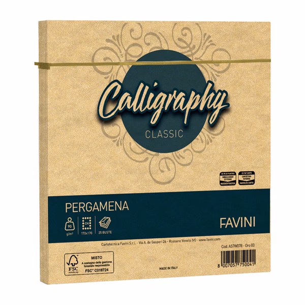 Busta Calligraphy Pergamena – 170 x 170 mm – 90 gr – oro 03 – Favini – conf. 25 pezzi