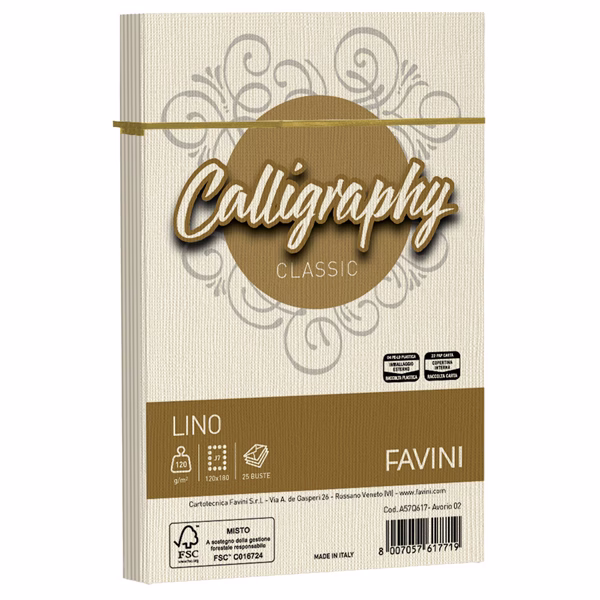 Buste Calligraphy Lino – 120 x 180 mm – 120 gr – avorio 02 – Favini – conf. 25 pezzi