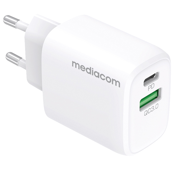 Caricatore da muro – 20 W – 1 porta USB – 1 porta USB Type-C – Mediacom
