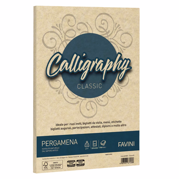 Carta Calligraphy Pergamena – A3 – 190 gr – crema 05 – Favini – conf. 250 fogli