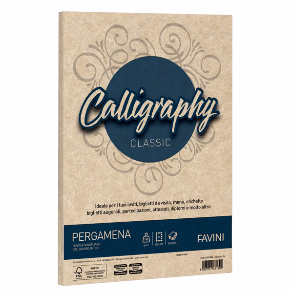 Carta Calligraphy pergamena – A4 – 190 gr – nocciola 04 – Favini – conf. 50 fogli