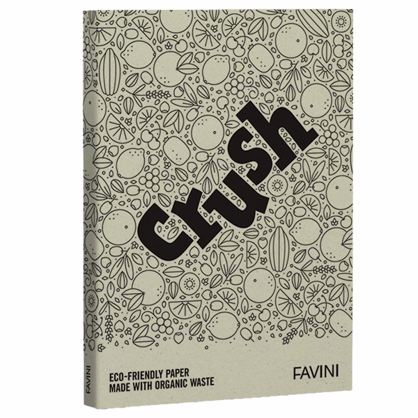 Risma di cartoncini Crush realizzati con il 15% di residui lavorazione agro-industriale, utilizzando energia rinnovabile. Riciclabili e biodegradabili. Ideali per esprimere la creatività rispettando l’ambiente.