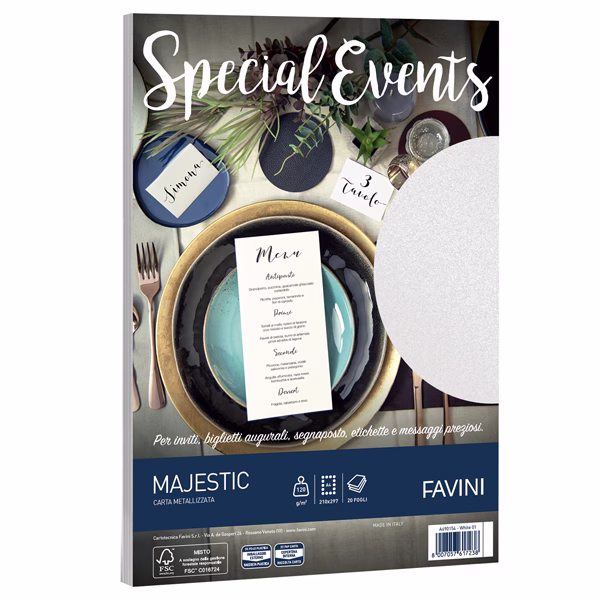Carta metallizzata Special Events – A4 – 120 gr – bianco – Favini – conf. 20 fogli
