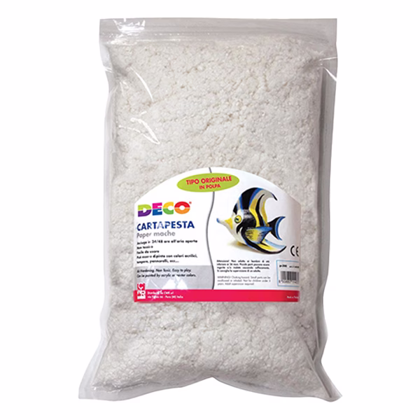 Cartapesta in polpa gr. 200. Facile da modellare, Asciuga rapidamente. Può essere dipinta con acrilici,