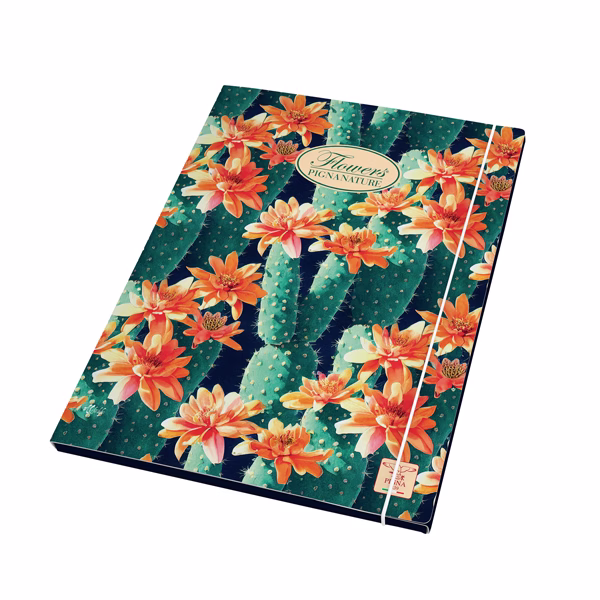 CARTELLINA A 3 LEMBI CON ELASTICO LINEA PIGNA NATURE FLOWERS. STRUTTURA IN CARTONE RIVESTITO CON CARTA USO MANO STAMPATA A MOTIVI FLOREALI. DIMENSIONI: 26X35,5X1,2CM.