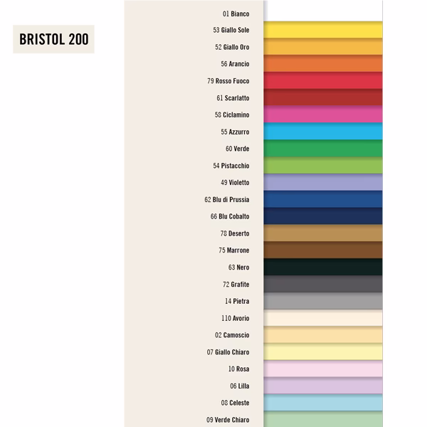 Cartoncino da 200gr prodotto con l’impiego di purissima cellulosa, non sbiancata e colorata nella pasta. Resiste alla luce e non sbiadisce. Superficie levigatissima, ideale per fondi, collage e layout.