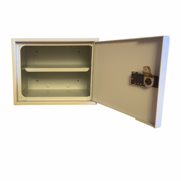 Cassette di sicurezza in lamiera con possibilità di fissaggio a muro e parete.