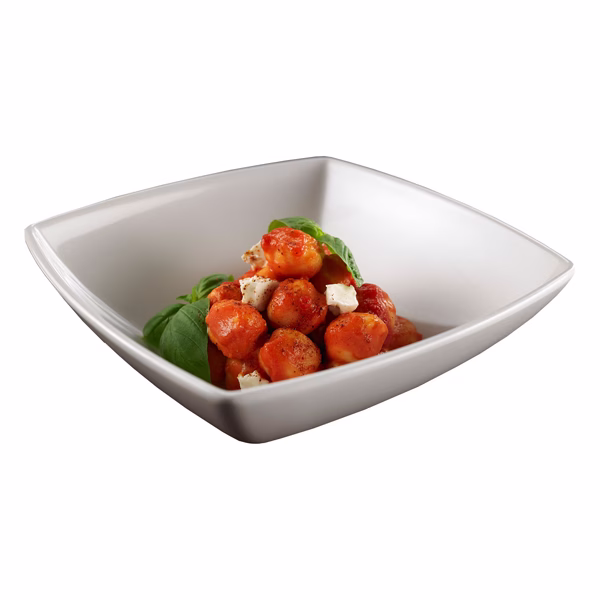 Ciotola quadrata in melamina 20.8×20.8x7hcm. Peso netto 410gr. Colore Bianco. 100% Melamina, prodotto idoneo al contatto con tutti i tipi di alimenti (T max70°C). Articolo lavabile in lavastoviglie; Da non utilizzare con utensili taglienti. Prodotto da non utilizzare unitamente all’alimento nel forno tradizionale e forno a microonde; Conservare il prodotto in luogo asciutto,lontano dai raggi del sole e fonti di calore(0°C+35°C).