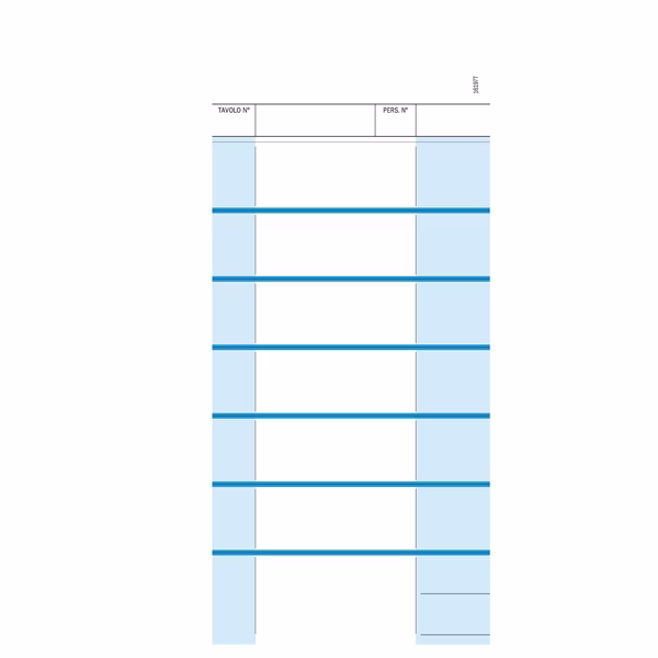 Snap comande 7 tagliandi autoricalcanti. Formato 23×10,5cm. Foglio carta trasmittente CB da gr. 54 (1° foglio), foglio in carta ricevente CF da gr. 55 (2° foglio)