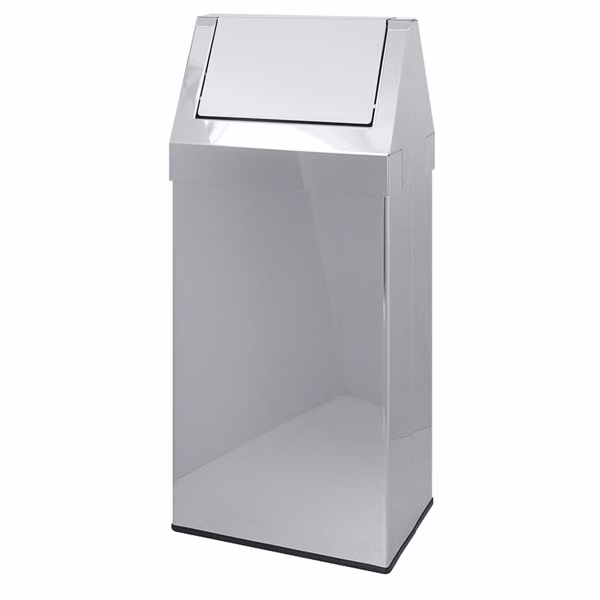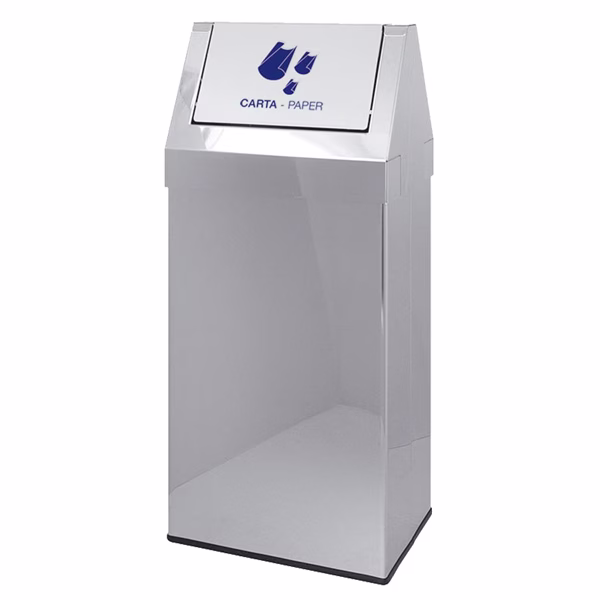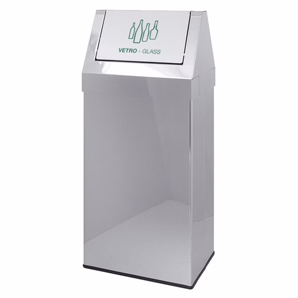 Contenitore rettangolare in acciaio inox con coperchio basculante per raccolta differenziata.
