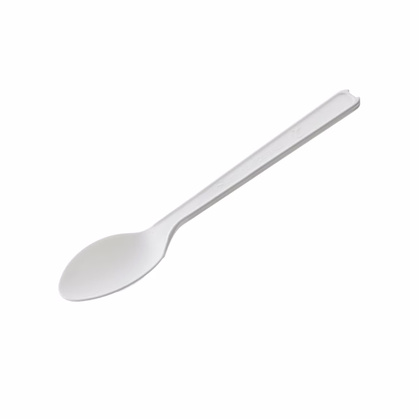 Cucchiaino realizzato in CPLA , ovvero PLA Cristallizzato, polimero derivato del mais resistente fino a 85°C. Biodegradabile e compostabile secondo norma EN13432.
