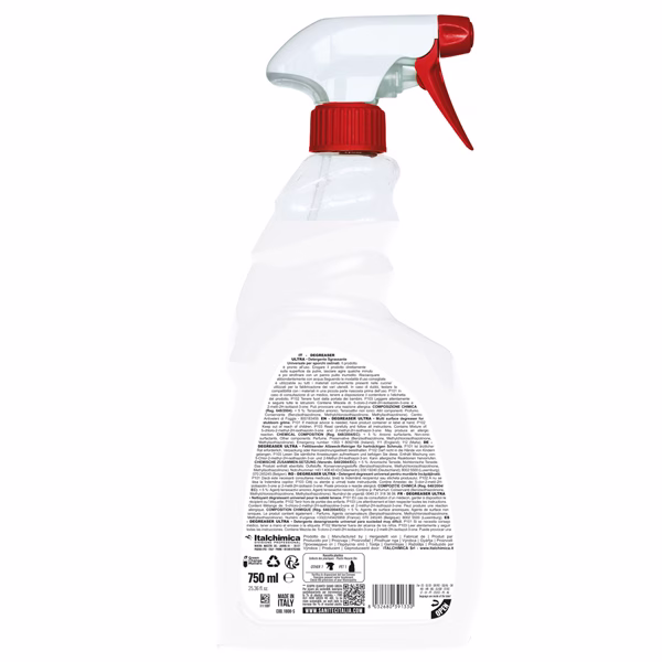 Detergente Sgrassante Universale per sporchi ostinati. Sgrassatore alcalino ad alta concentrazione profumato. Rimuove efficacemente grasso, olio e residui carbonizzati. Ideale su: tapparelle, termosifoni, mobili da giardino, piani di lavoro, cappe, grill, forni, pentole, anche in caso di grasso incrostato e carbonizzato, capi d’abbigliamento con macchie difficili. Modalità d’uso: spruzzare il prodotto sulla superficie da trattare. Lasciare agire fino ad un massimo di 5 minuti e risciacquare con un panno umido.