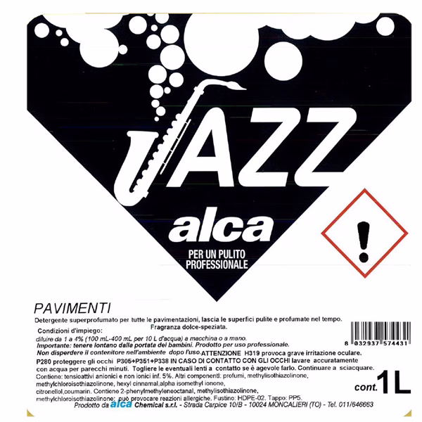 JAZZ NORAH – Detergente ad alta profumazione con fragranza al muschio speziato. Miscela neutra (pH 7,5) ad alto tenore di profumo con agenti sinergici in base acquosa adatta a lasciare un’atmosfera gradevole nell’ambiente in cui si è lavorato. Consigliata per luoghi chiusi soggetti a passaggio frequente di persone. Adatta per le pulizie di manutenzione di tutte le superfici lavabili. Prodotto poco schiumoso, adatto all’uso sia manuale che a macchina senza risciacquo, lascia le superfici brillanti e profumate, senza residui nè aloni. In flacone da 1 litro.