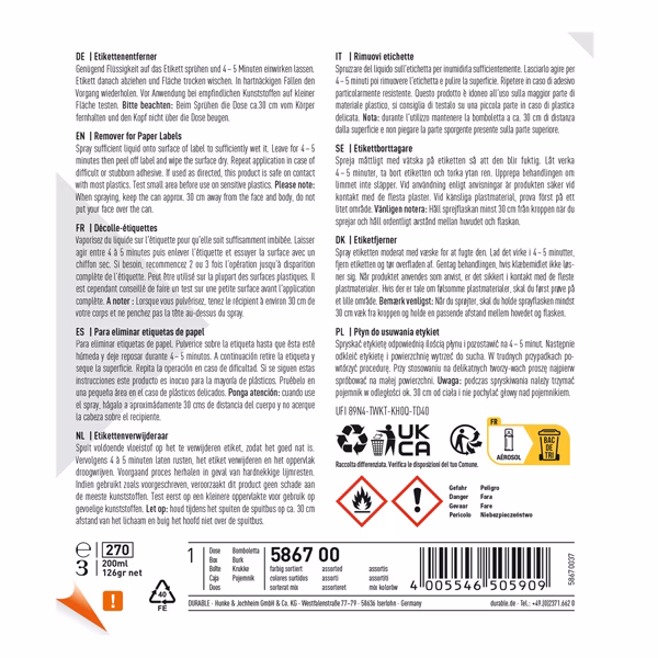 . Il prodotto va lasciato agire per qualche minuto, dopodiché l’etichetta può essere facilmente rimossa