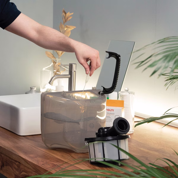 Polti Vaporetto MV 10.20 é un Dispositivo di Disinfezione a Vapore (DDV) conforme alla norma AFNOR NF T72-110* – ambito medicale e ha dimostrato effetto virucida, battericida, sporicida, fungicida, levuricida e mufficida. Grazie alla sua autonomia illimitata, è ideale per la pulizia profonda, naturale e immediata di uffici e piccoli spazi. Le funzioni pulizia a vapore, aspirazione e lavaggio a freddo con acqua garantiscono il massimo dell’efficacia nella rimozione dello sporco ostinato ed eccellenti risultati di disinfezione* contro germi, batteri, funghi e spore. Realizzato in Italia, è personalizzabile e componibile a seconda delle specifiche esigenze attraverso i numerosi accessori compatibili che permettono di trattare efficacemente tutti gli ambienti, i tessuti e le superfici lavabili. ACCESSORI IN DOTAZIONE: 1 confezione da 20 fiale di Polti Kalstop; 1 confezione da 20 fiale di Polti bioecologico Pino; 1 confezione da 20 fiale di Polti Bioecologico agrumi; Borsa porta accessori; Spazzolino pulizia secchio; Imbuto.