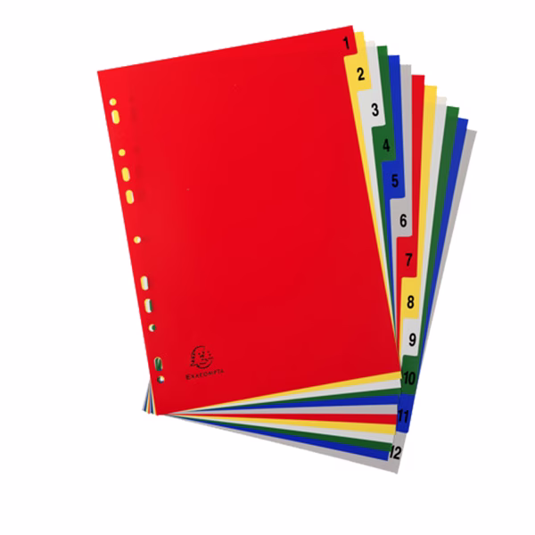 Divisori con 12 tasti numerici 1-12, ideale per organizzare e archiviare informazioni importanti, appunti o documenti scolastici, per l’uso a casa, a scuola o in ufficio .