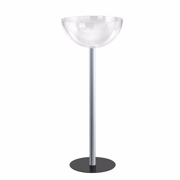 Espositore da terra con semisfera Ø 50cm in acrilico su un livello.Queste strutture con contenitori, per prodotti di vario genere (dagli alimentari confezionati al merchandising, farmaci, cosmetici), sono ideali per ogni esigenza di esposizione e promozione presso aziende, punti vendita, showroom. Particolarmente indicate per l’organizzazione, l’allestimento e la vendita di merchandising, ad esempio presso centri sportivi (palestre, piscine, centri fitness, wellness), farmacie, presso stand fieristici, supermercati, mini market, discount, centri commerciali, ecc.