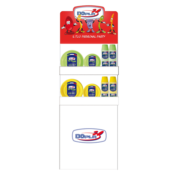 Espositore da terra 60cm x 40cm x H1,65mt (incluso crowner 37cm). Espositore con 2 vasche, realizzato in cartone, stabile e facile da montare. Istruzioni incluse.