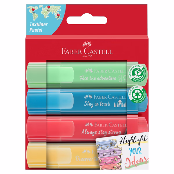 Evidenziatore Textliner 46 – colori assortiti pastel – Faber Castell – astuccio 4 pezzi