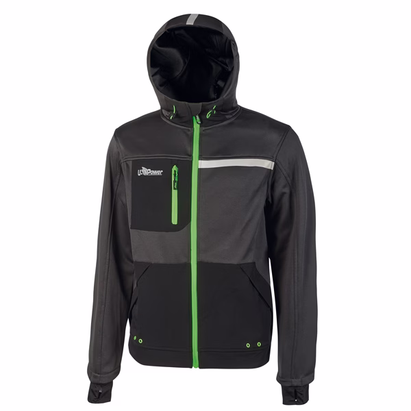 La banda reflex sul petto latto sinistro e sul cappuccio garantisce visibilità e arricchisce il design, unitamente alla stampa reflective del logo “U-Power” sul lato destro del petto. Il polsino anti-vento elasticizzato con foro passa-pollice è dotato anche di comodo e innovativo foro per l’orologio. Felpa ideale da utilizzare da sola o sotto una giacca da lavoro. Ideale per: magazzinieri, autotrasportatori, logistica, edilizia e muratori, elettricisti, idraulici, carpentieri e artigiani in generale, giardinieri e settore agricoltura.