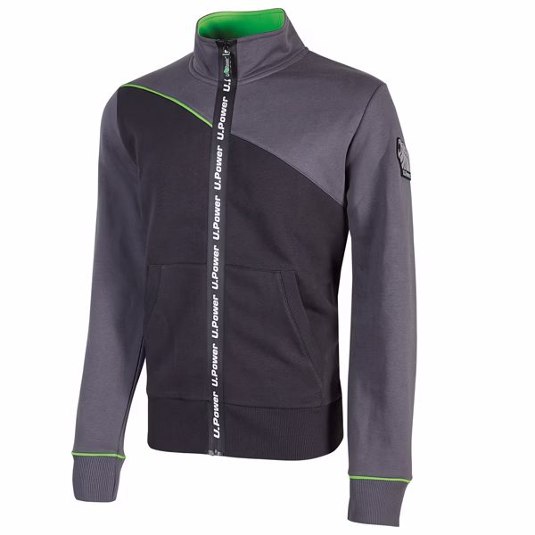 Felpa senza cappuccio con cerniera centrale impermeabile arricchita da serigrafia “U-Power”. Felpa full-zip con polsini e fondo a costine elasticizzate per un maggiore comfort e una migliore vestibilità. Gli inserti in piping fluo elasticizzato donano maggiore visibilità a questa felpa personalizzata e caratterizzano il modello con un look sportivo adatto sia al lavoro che al tempo libero. Il tessuto, costituito da un misto di cotone e poliestere, rendono il modello ideale in tutte le stagioni.