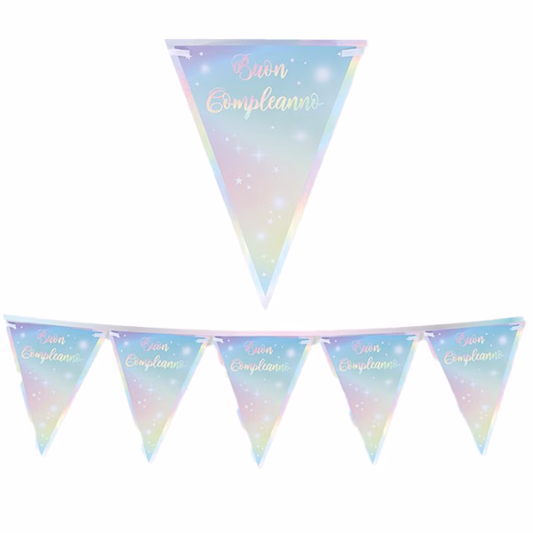 Festone bandiere Buon Compleanno Soft Rainbow in cartone, lunghezza 3mt.