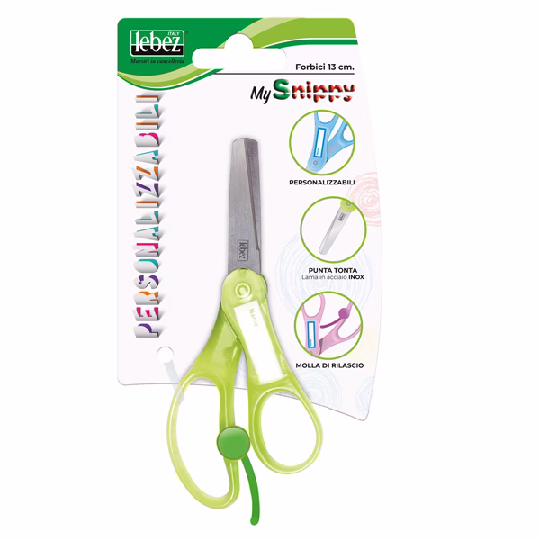 Forbice Snippy – personalizzabile – punta tonda – 13 cm – lama acciaio – colori assortiti – Lebez
