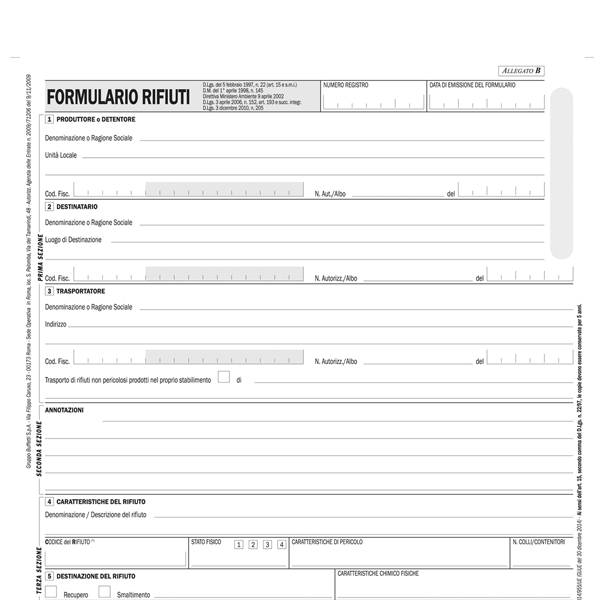 Formulario dei rifiuti snap – 4 copie – DU18583030F – Data Ufficio