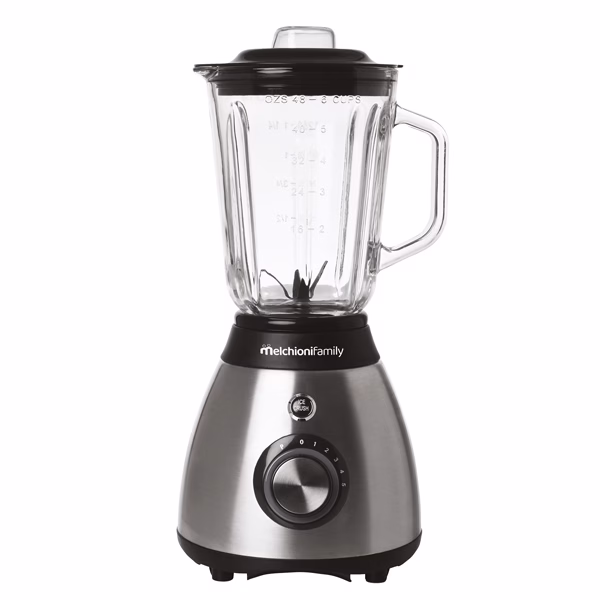 Frullatore elettrico a 5 velocità e funzione Pulse con caraffa in vetro da 1,5L. Dotato di 6 lame in acciaio inossidabile perfette anche per tritare il ghiaccio. Luce LED di funzionamento, base in acciaio e piedini antiscivolo. Coperchio con dosatore per l’aggiunta di ingredienti durante la miscelazione.