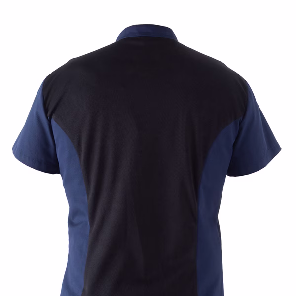 Giacca a maniche corte pratica e confortevole realizzata in poliestere cotone 200 gr/m² che garantisce colori brillanti e manutenzione semplice. Vestibilità Slim Fit, collo coreano, abbottonatura dalla tradizionale punta all’insù, taschino lato cuore ed portapenne sulla manica sinistra. Parte posteriore realizzata in maglia di piquet colore nero a contrasto, per assicurare traspirabilità e areazione. Adatta ai lavaggi alle alte temperature. Taglie: S, M, L, XL, XXL, 3XL, 4XL