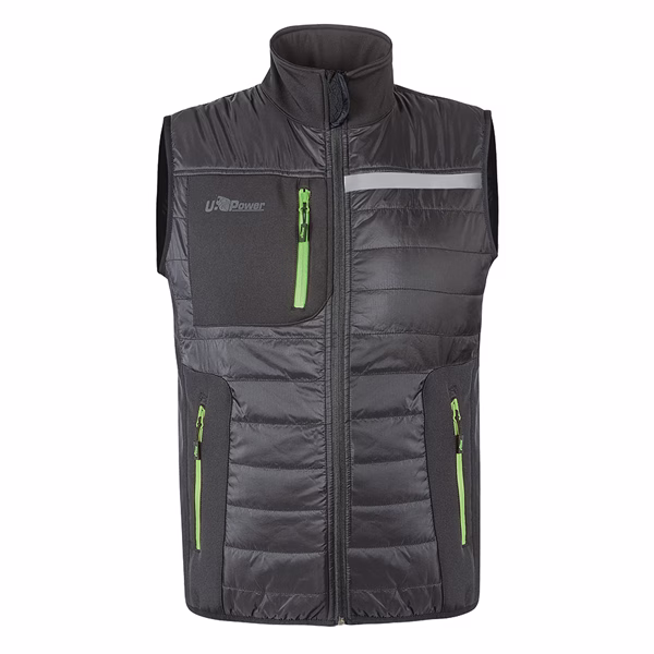 Gilet con imbottitura in grafene per una distribuzione omogenea del calore e il mantenimento del microclima ideale per assicurare il massimo comfort. Idrorepellente con proprietà batteriostatiche di controllo dei cattivi odori. Due tasche frontali dotate di chiusura zip, tasca verticale sul petto con cerniera e tasca interna con chiusura a velcro. Fondo e giro maniche in tessuto elasticizzato, inserti laterali in morbido Softshell elasticizzato per garantire una vestibilità ottimale. Su ordinazione tutte le taglie da XS a 5XL. Adatto per trasporto e logistica, edilizia, industria, meccanici, gommisti, agricoltura, giardineria e anche tempo libero.