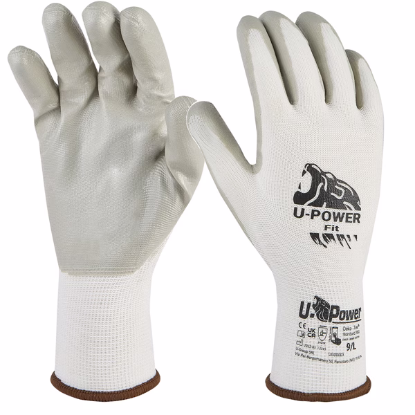 Guanti di protezione FIT – con polsino nero – taglia 10 – bianco/grigio – U-Power