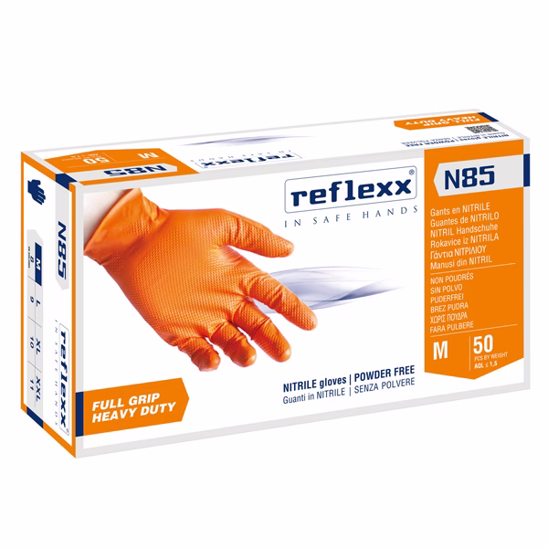 HEAVY DUTY: il grip e il peso elevato del guanto – peso 8,4 gr con spessore 0,15-0,20 mm – lo rendono particolarmente idoneo ad usi industriali, nel settore della meccanica e automotive