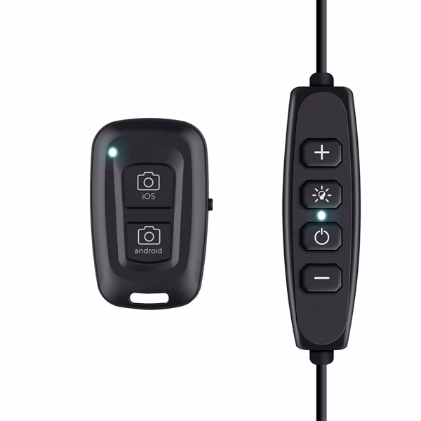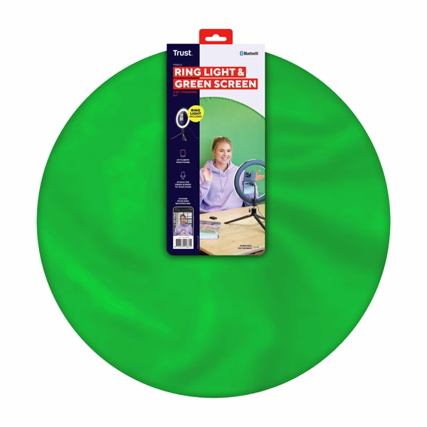 scegliere un qualsiasi sfondo con te al centro – Il green screen può essere agganciato alla maggior parte delle sedie tramite fasce in velcro – Anello luminoso LED da 10″ che proietta sul volto una luce graziosa – Il telecomando integrato permette di regolare la luminosità e la temperatura del colore – Compatibile con telefoni, fotocamere e webcam per iniziare subito a trasmettere – Include il controller Bluetooth®, per il controllo in wireless dell’otturatore del telefono – Alimentazione USB, compatibile con qualsiasi caricabatterie per telefono o powerbank (non forniti in dotazione)