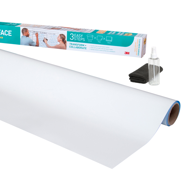 Lavagna cancellabile con superficie flessibile a prova di pennarelli indelebili. Offre la flessibilità di trasformare istantaneamente una supericie di lavoro in una lavagna bianca e la libertà di scrivere anche con un pennarello indelebile senza lasciare macchie. Utilizzabile con tutti i tipi di pennarelli con la possibilità di cancellare a secco e di pulire solo con acqua il pennarello indelebile. Si taglia su misura ed è facile da pulire. Incluso nella confezione 1 spray d’acqua + 1 panno in microfibra.