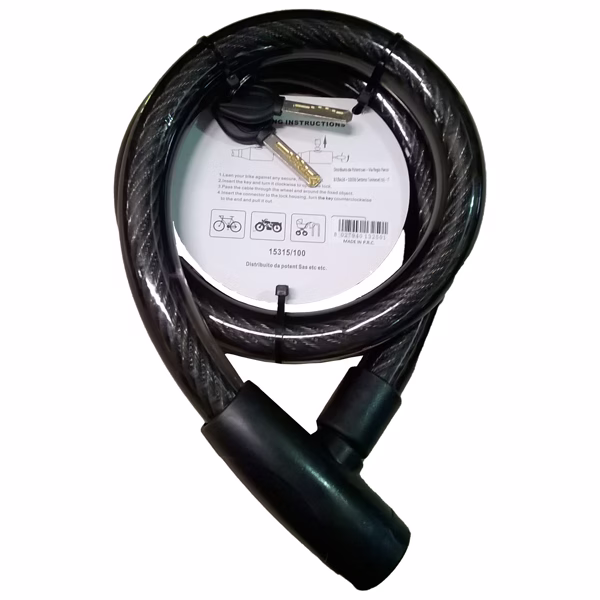 Cavo corazzato con ricopertura in plastica. Fornito con due chiavi. Dimensioni ?25x100mm