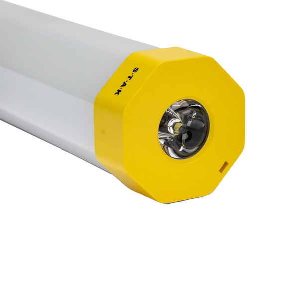Luce da lavoro tubolare Lumibar 300 lumen con torcia e powerbank. Ricaricabile, impermeabile IP65 e iper resistente. Autonomia fino a 12 ore. Può essere appesa (2 cinturini forniti) e munita di magnete per fissaggio su superfici metalliche. Corpo in plastica policarbonato iper resistente, è certificata IK08. Batteria al litio incorporata da 2500 mAh ricaricabile.