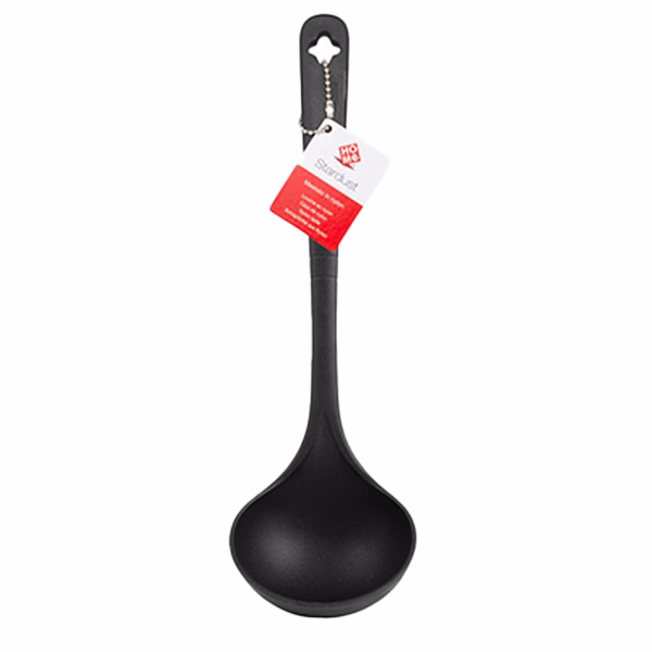Mestolo da cucina di colore nero. Materiale: nylon. Idoneo al contatto con gli alimenti. Può essere lavato in lavastoviglie.