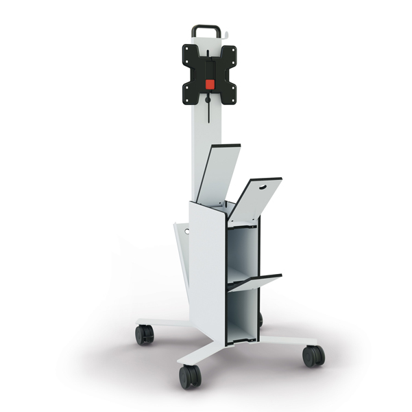 Sicuro e flessibile grazie alle ruote con dispositivo di bloccaggio. Maneggevole grazie alla maniglia ed al gancio fermacavi sul retro. Gestione dei cavi integrata. Realizzato con pannelli di alta qualità, offre diverse aperture per il passaggio dei cavi e per la dissipazione del calore. Dotato di diversi scomparti per poter riporre i vari accessori come Mini-PC, multi prese, telecomandi, mouse, tastiera, cavi, ecc. Assemblaggio facile e veloce. Attacco universale VESA (da 75 × 75 a 200 × 200 mm). Per monitor da 19″ a 43″, fino a 18 kg (non incluso).