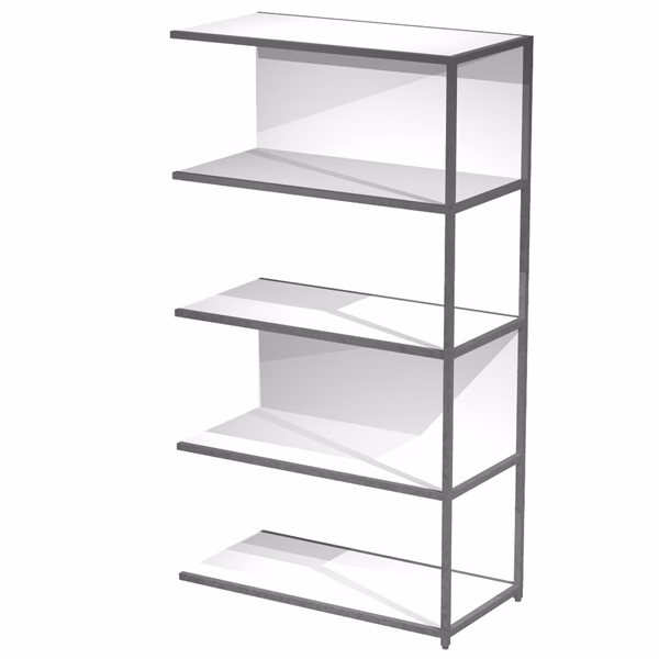 Modulo aggiuntivo per libreria Modular. Struttura in metallo sezione 20×20 mm. Altezza vano ripiani 370 mm, dietro assemblabile in qualsiasi vano fronte/retro (bifacciale).